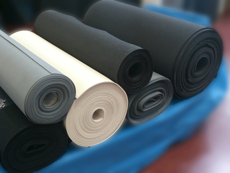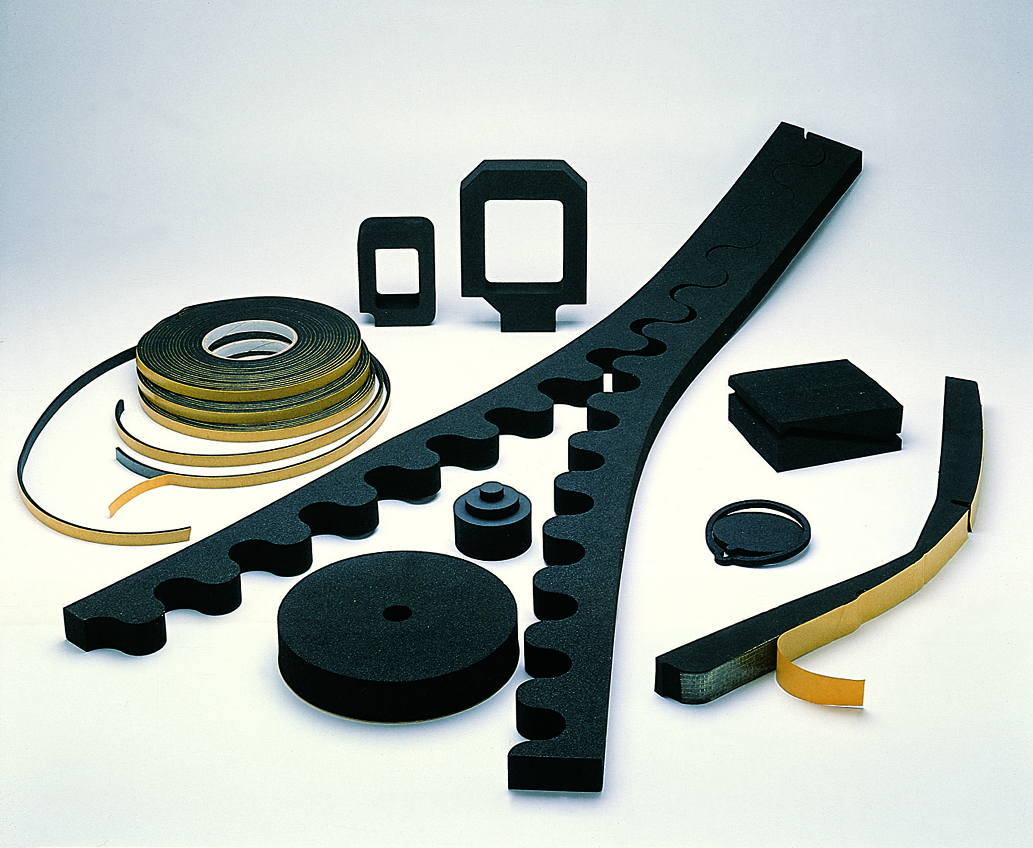 Lastre, rotoli e profili in gomma espansa a cellule chiuse o aperte con o senza adesivo, profili fresati anche in versione autoestinguente (NR-SBR/EPDM/CR/NBR-PVC/).
